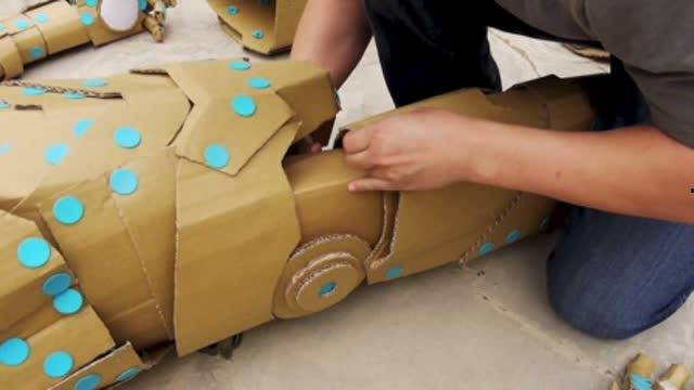 3. 组装零件:将裁剪好的纸板按照图纸组装成各个部件,如头部、胸部、手臂、腿部等。
